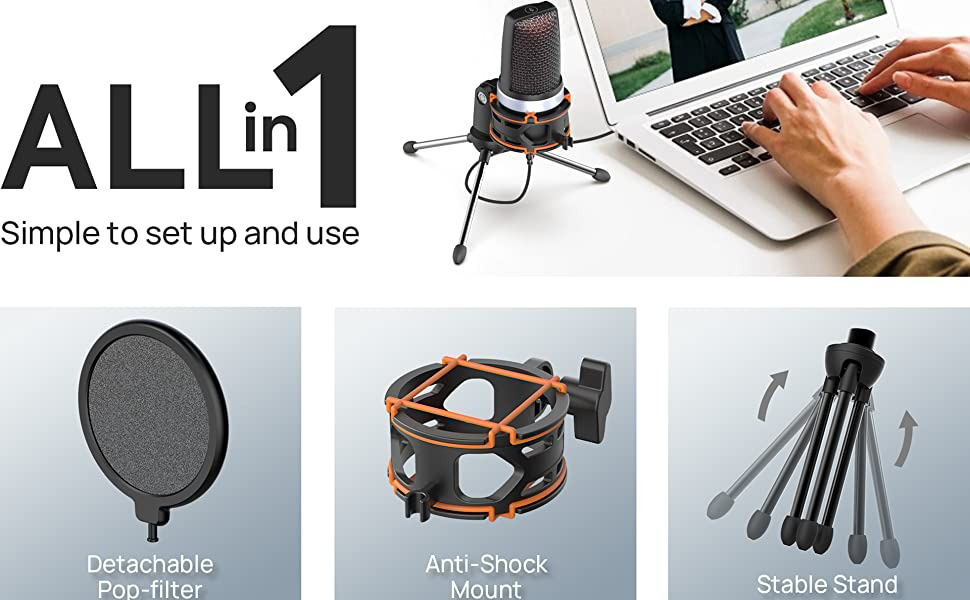 Micrófono compatible con computadora y teléfono móvil con tarjeta de sonido inc