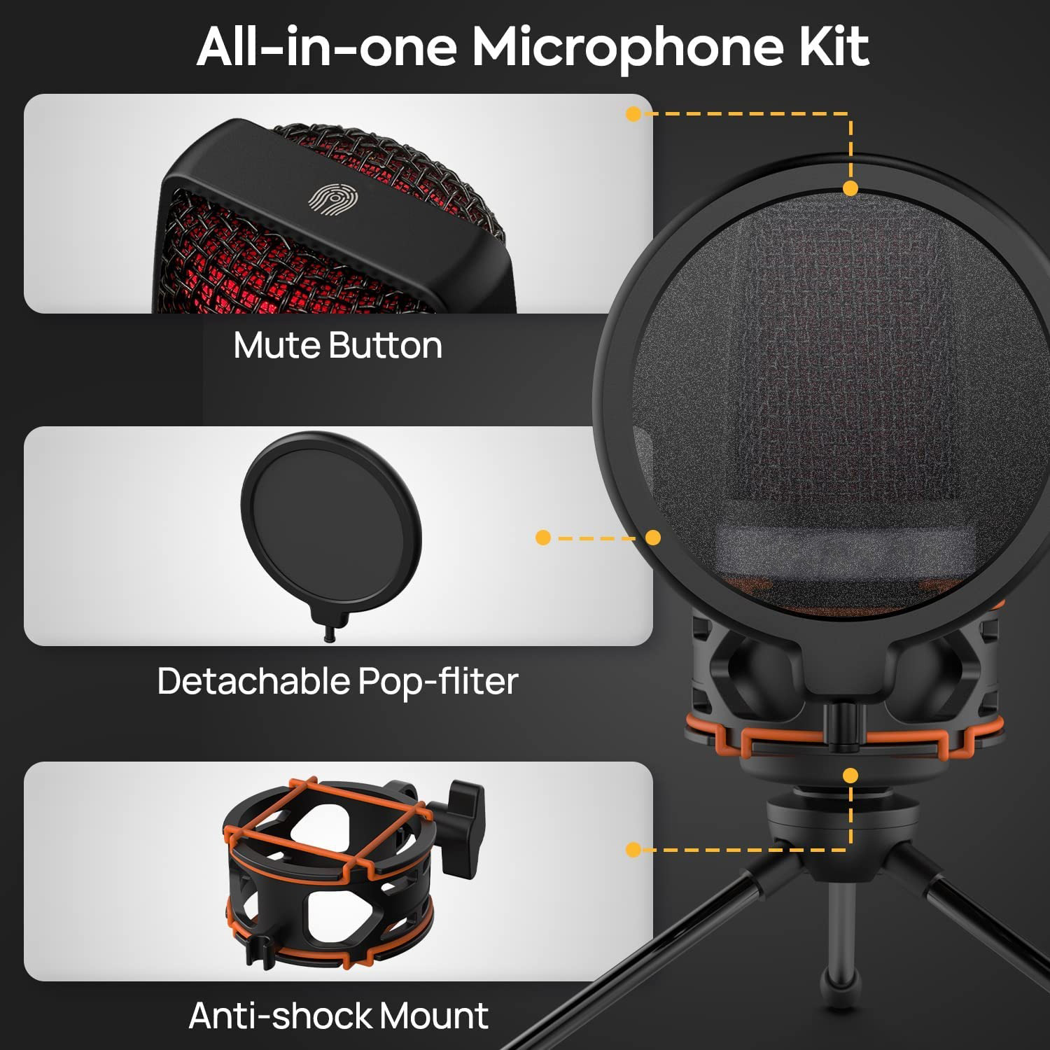 Parámetros del producto función de señalarseñalamiento cardioidemétodo de transferenciaTIPO-C con cable;USB2.0;longitud del cable 1,8 mcabezal de radioMicrófono capacitivo 1465cuerpo de conexiónteléfono móvil;computadora de escritorio;cuadernoFuente de alimentaciónFuente de alimentación externa 5V2AEscena aplicableTransmisión en vivo;Clase en línea;grabación profesional;ancla del juego, etc.Cómo usarescritoriotipoMicrófono de grabación profesionalSensibilidadParámetros -22dB+/-2dB;1KHz0dB 1VFrecuencia de muestreoParámetro Up 24bit 192KHzRespuesta de frecuencia20-20KHzSNR93 dBCapacidad de nivel de presión sonora SPLMáx. 110dBDistorsión armónica total THD+NParámetro -85dBConsumo de energía de la máquina5V200mACaracterísticas del producto indicador de trabajoFuncionamiento normal: verde esmeralda;silencio: luz rojaTarjeta de sonido integradaTenerFuente de alimentaciónFuente de alimentación externa 5V2Amétodo de transferenciaTIPO-C con cable;USB2.0;longitud del cable 1,8 mbotones físicosFuncionamiento normal: verde esmeralda;silencio: luz roja