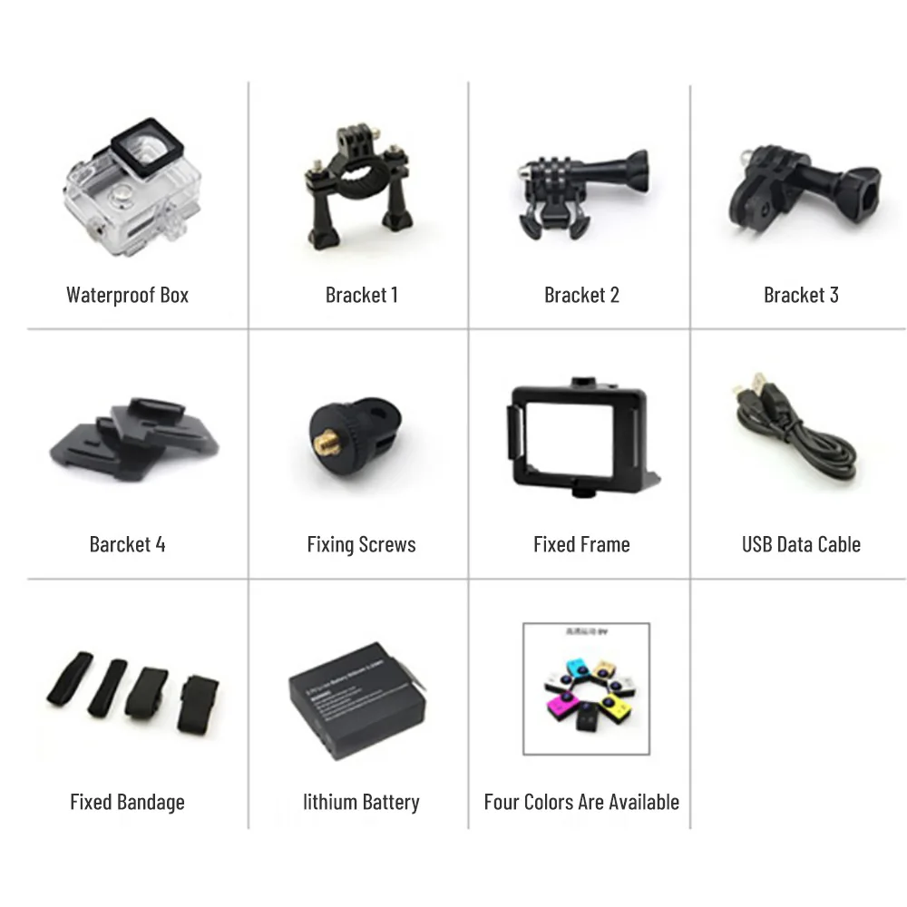Cámara impermeable Full HD 1080P, videocámara de 2,0 pulgadas, videocámara deportiva DV Go para coche, Mini videocámara deportiva con accesorios de cámara